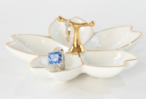 宝石店で販売する、桜をモチーフにしたジュエリートレイを作りたい。参考する製品を提供するので、それに近づけつつ新しいデザインも含めて製造して欲しい